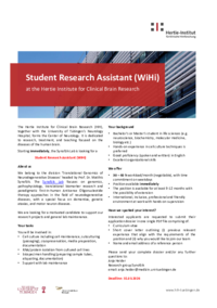 Student Research Assistant (WiHi) at the Hertie Institute for Clinical Brain Research The Hertie Institute for Clinical Brain Research (HIH), together with the University of Tübingen’s Neurology…