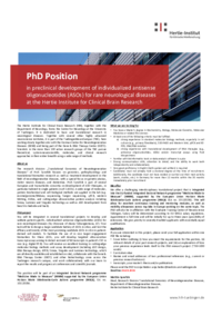 PhD Position in preclinical development of individualized antisense oligonucleotides (ASOs) for rare neurological diseases at the Hertie Institute for Clinical Brain Research The Hertie Institute…